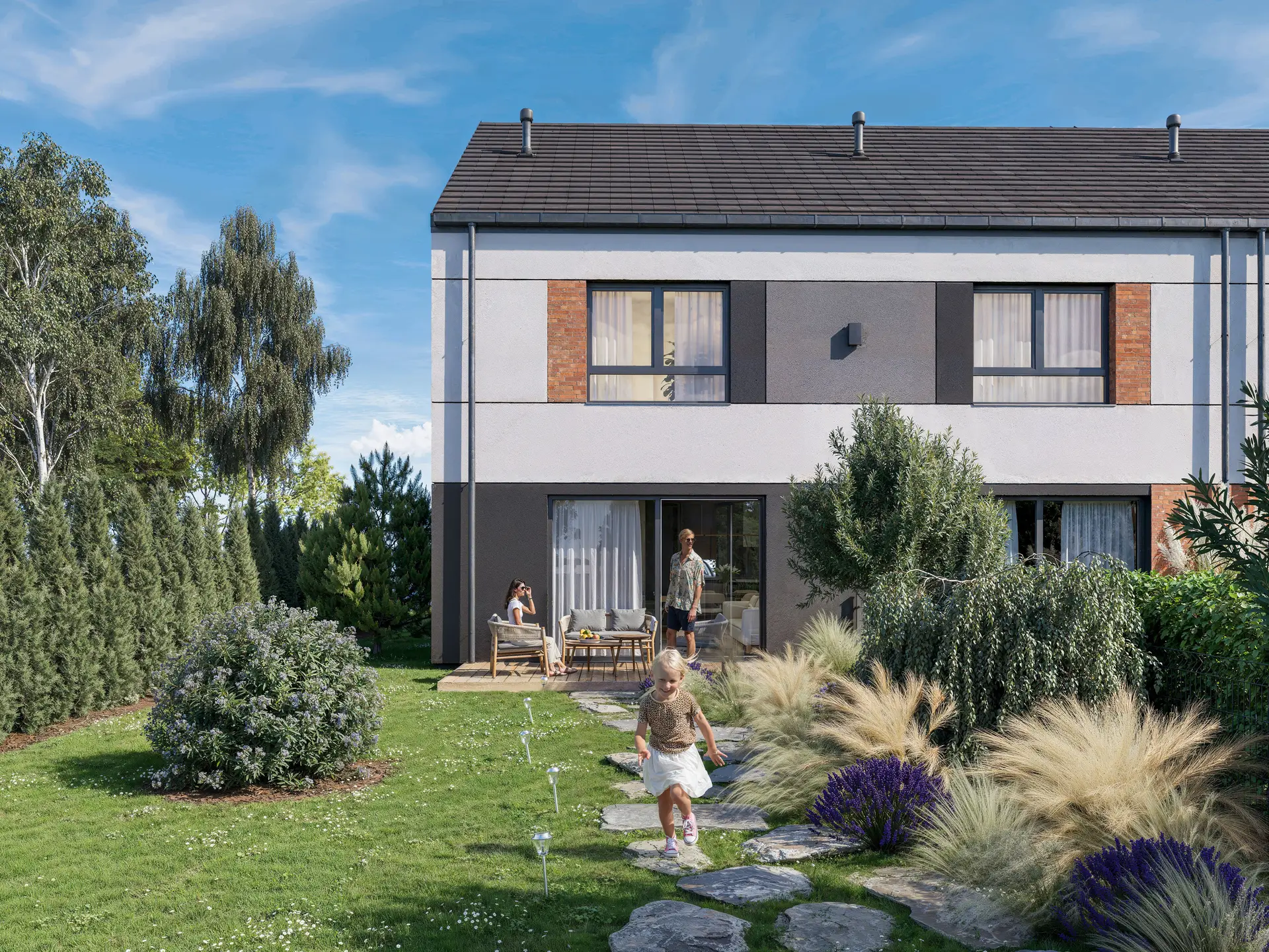 Nasze Domy to dobrze przemyślana przestrzeń o powierzchni 85 m². Na parterze znajduje się salon z widokiem na ogród, jadalnią, aneksem kuchennym oraz łazienka. Każdy Dom posiada jednostanowiskowe miejsce postojowe bezpośrednio przed budynkiem. Na piętrze usytułowane są trzy sypialnie wraz z łazienką. Każdy Dom posiada ogród o powierzchni od 122.46 do nawet 247.94 m². Domy są sprzedawane w stanie deweloperskim. Oferowane przez nas wnętrza dają bogatą możliwość aranżacji. Przykładowe wizualizacje pomogą Ci lepiej wyobrazić sobie Twoją wymarzoną przestrzeń do życia.