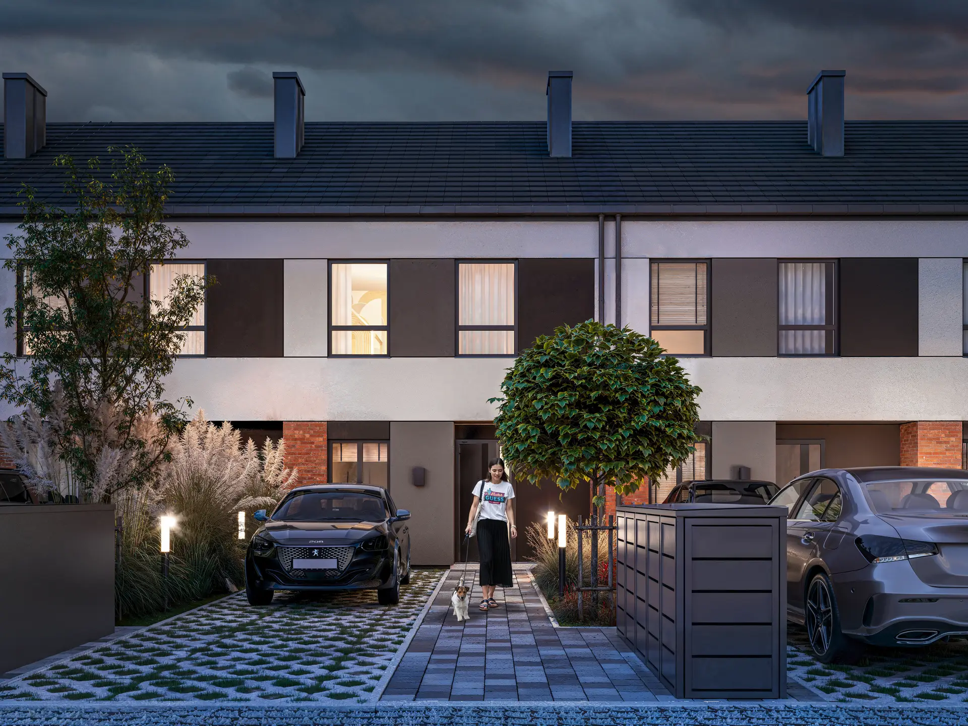 Nasze Domy to dobrze przemyślana przestrzeń o powierzchni 85 m². Na parterze znajduje się salon z widokiem na ogród, jadalnią, aneksem kuchennym oraz łazienka. Każdy Dom posiada jednostanowiskowe miejsce postojowe bezpośrednio przed budynkiem. Na piętrze usytułowane są trzy sypialnie wraz z łazienką. Każdy Dom posiada ogród o powierzchni od 122.46 do nawet 247.94 m². Domy są sprzedawane w stanie deweloperskim. Oferowane przez nas wnętrza dają bogatą możliwość aranżacji. Przykładowe wizualizacje pomogą Ci lepiej wyobrazić sobie Twoją wymarzoną przestrzeń do życia.